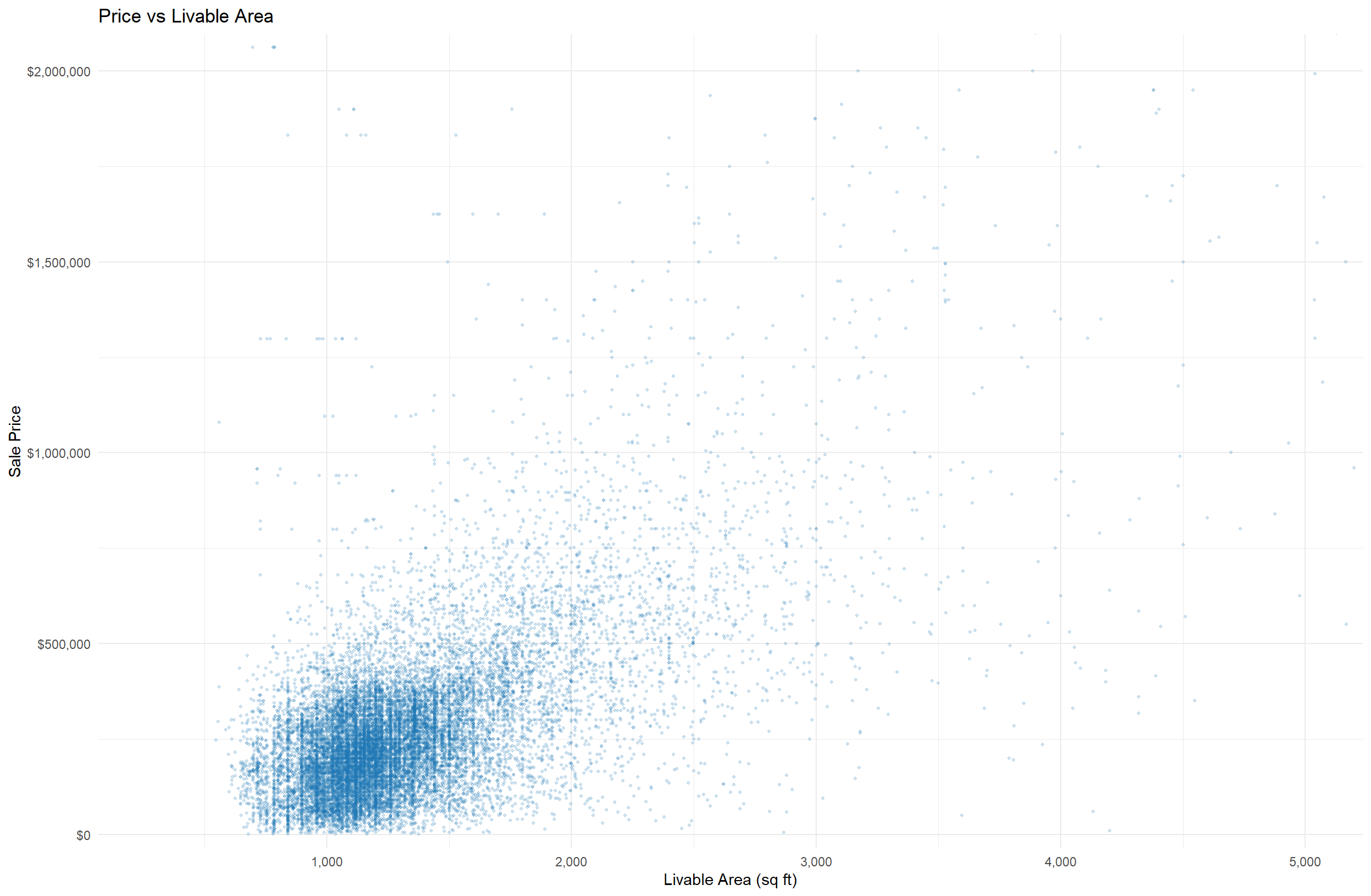 The final model performs best with an R² of 0.771, which means that this model explains about 77% of the variation in home prices. The predicted price is usually about $97,500 away from the actual sale price, which is about a 28% improvement over the baseline structural model.